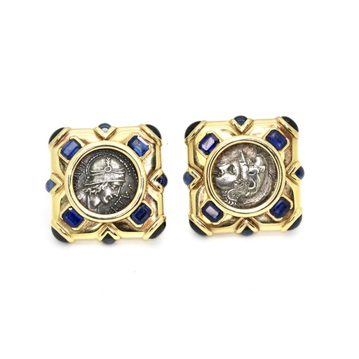 18kt yellow gold square shape, center an antique silver coin