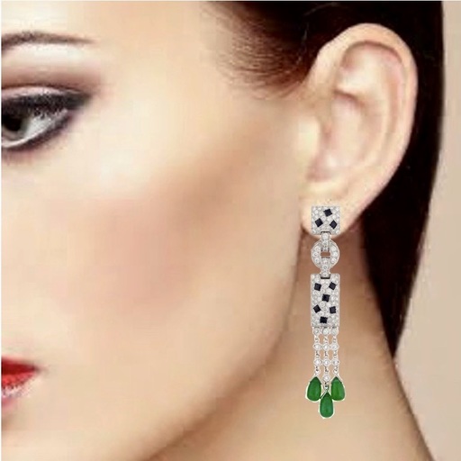 Grey gold, diamonds (2.28 carats), Emerald in drop (2.26 carats), Onyx